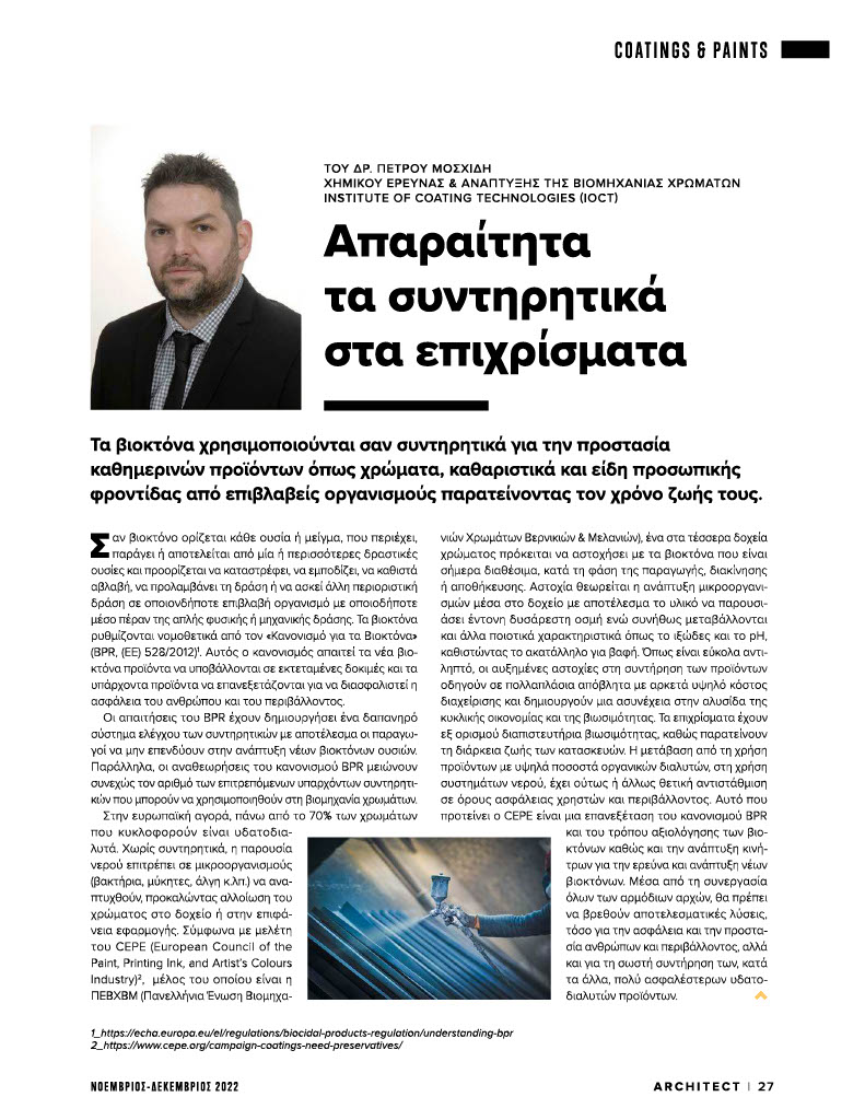 Είναι απαραίτητα τα συντηρητικά στα χρώματα; Διαβάστε το άρθρο του Πέτρου Μοσχίδη στο τεύχος Νοεμβρίου-Δεκεμβρίου του περιοδικού Architect.